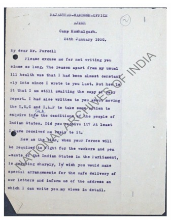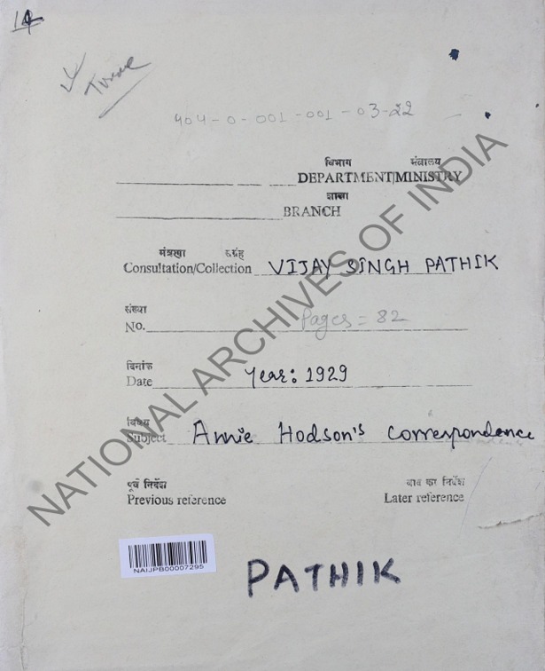 LETTERS VIJAY SINGH PATHIK AJMER MEWARA 1923-1934