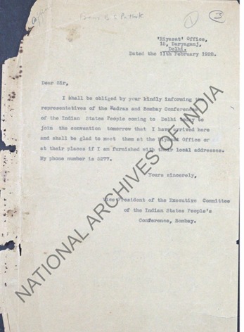SEN CORRESPONDANCE LETTER SENT BY B S PATHIK 1929-40
